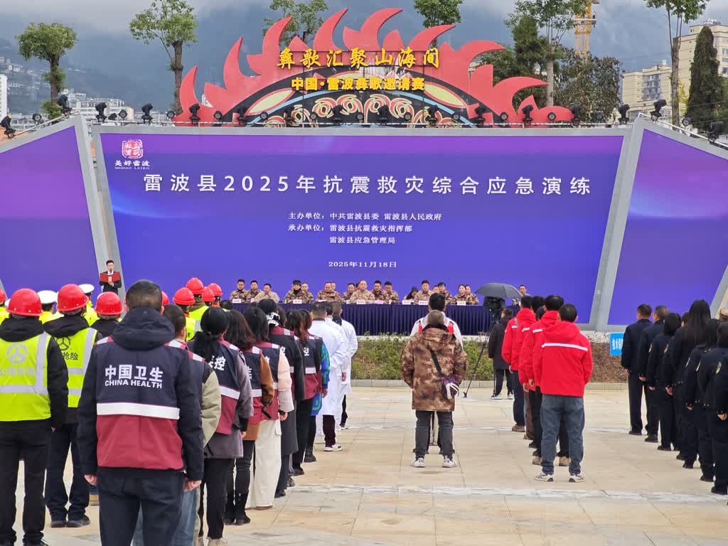 11月18日,雷波县举行2025年抗震救灾综合应急演练。县委副书记、县长郑洪波观摩演练并作点评讲话。县委副书记杨解平,县委常委、县政府副县长王军杰,县人大常委会副主任龙英以及21个乡(镇)主要负责人观摩演练。抗震救灾联合指挥部成员单位参与演练。
