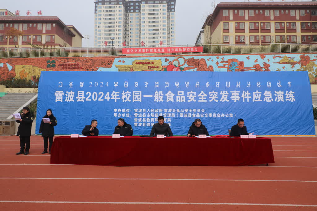 为进一步完善食品安全突发事件应急处置机制,全面提升雷波县食品安全突发事件应急处置能力。12月19日上午,雷波县在锦屏初级中学举行2024年校园一般食品安全突发事件应急演练,并召开雷波县第二次食品安全全体(扩大)会议。县委常委、宣传部部长、县食安委副主任米煌现场观摩演练并参加会议;县政府副县长、县食安委副主任田野主持会议。